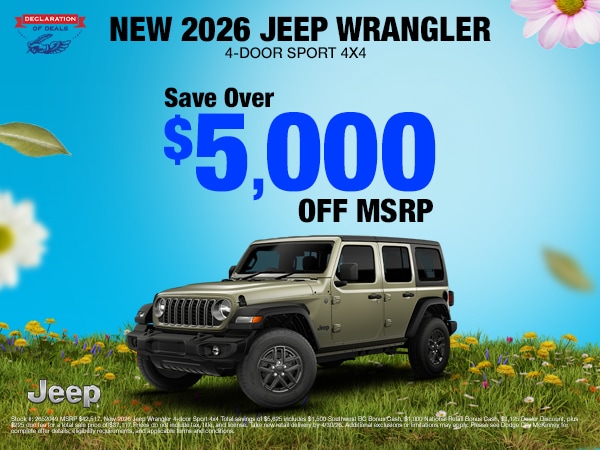 New-vehicle specials may include lease and finance offers, as well as savings on select new Chrysler, Dodge, Jeep, and Ram models.
