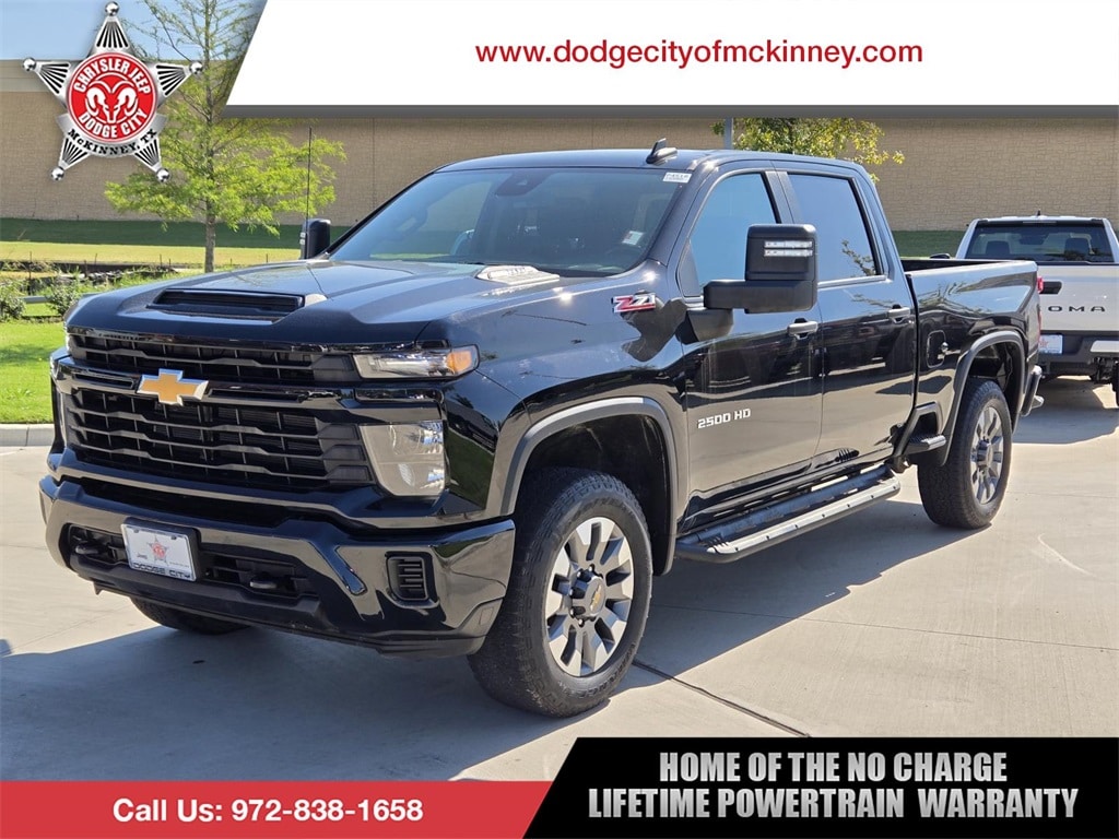 2024 Chevrolet Silverado 2500HD Custom Black 4WD 10-Speed Automatic 6.6L V8 10-Speed Automatic, 4WD, Black Cloth, 10-Way Power Driver Seat Adjuster w/Lumbar, 120-Volt Bed Mounted Power Outlet, 120-Volt Interior Power Outlet, 170 Amp Alternator, 2-Speed Electronic Shift Transfer Case, 3.5" Diagonal Monochromatic Display DIC, Auto-Dimming Inside Rear-View Mirror, Black Mirror Caps, Bluetooth® For Phone, Chevrolet Connected Access Capable, Color-Keyed Carpeting Floor Covering, Compass, Custom Convenience Package, Custom Value Package, CX Safety Package, Deep-Tinted Glass, Dual Rear USB Ports (Charge Only), Electric Rear-Window Defogger, Electronic Cruise Control w/Set & Resume Speed, EZ Lift Power Lock & Release Tailgate, Front Rubberized Vinyl Floor Mats, Gooseneck/5th Wheel Prep Package, HD Rear Vision Camera, Heated & Auto-Dimming Vertical Trailering Mirrors, Heated Vertical Trailering Mirrors, Hill Descent Control, Hitch Package (LPO), Integrated Trailer Brake Controller, Lane Change Alert w/Side Blind Zone Alert, LED Cargo Area Lighting, Locking Tailgate, Manual Tailgate Function w/No EZ Lift, Manual Tilt-Wheel Steering Column, Off-Road Suspension, OnStar & Chevrolet Connected Services Capable, Power Door Locks, Power Front Windows w/Driver Express Up/Down, Power Front Windows w/Passenger Express Down, Power Rear Windows w/Express Down, Preferred Equipment Group 1CX, Push Button Start, Rear 60/40 Folding Bench Seat (Folds Up), Rear Cross Traffic Alert, Rear Park Assist, Rear Rubberized Vinyl Floor Mats, Remote Keyless Entry, Remote Vehicle Starter System, SiriusXM w/360L, Standard Tailgate, Suspension Package, Unauthorized Entry Theft-Deterrent System, Wi-Fi Hotspot Capable, Wireless Phone Projection, Z71 Off-Road Package.