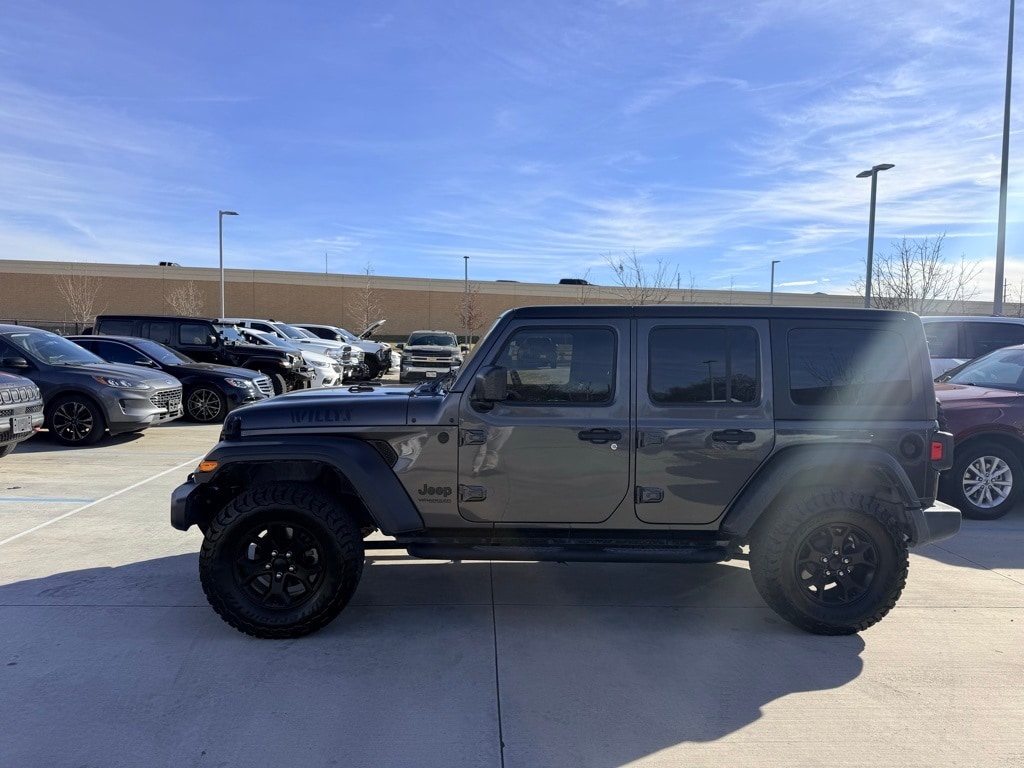 2020 Jeep Wrangler Unlimited Willys Granite Crystal Metallic Clearcoat 4WD 8-Speed Automatic 3.6L V6 24V VVT 1-Year SiriusXM Radio Service, 4-Wheel Drive Swing Gate Decal, 7.0" Touchscreen Display, Air Conditioning w/Auto Temperature Control, Air Filtering, Anti-Lock 4-Wheel Disc HD Brakes, Anti-Spin Differential Rear Axle, Apple CarPlay, Automatic Headlamps, Black Grille, Black Trail Rated Badge, Bridgestone Brand Tires, Cluster 7.0" TFT Color Display, Convenience Group, Deep Tint Sunscreen Windows, Front 1-Touch Down Power Windows, Front LED Fog Lamps, Google Android Auto, GPS Antenna Input, Integrated Center Stack Radio, Leather Wrapped Steering Wheel, LED Headlamp & Fog Lamp Group, LED Reflector Headlamps, Matte Black Jeep Badge, MOPAR All-Weather Floor Mats, Power Heated Mirrors, Quick Order Package 24W Willys, Radio: Uconnect 4 w/7" Display, Remote Keyless Entry, Security Alarm, SiriusXM Satellite Radio, Speed Sensitive Power Locks, Sun Visors w/Illuminated Vanity Mirrors, Technology Group, Universal Garage Door Opener, USB Host Flip, Wheels: 17" x 7.5" Moab Black Aluminum, Willys, Willys Hood Decal, Wrangler Decal.
