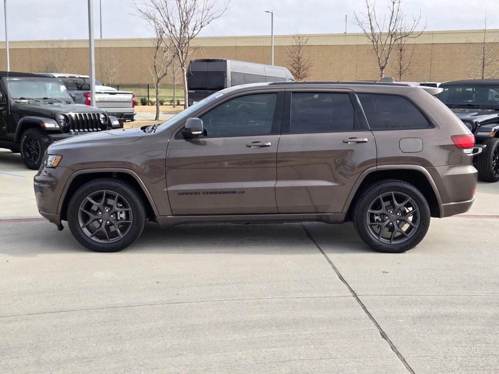 2021 Jeep Grand Cherokee 80th Anniversary Edition Walnut Brown Metallic Clearcoat RWD 8-Speed Automatic 3.6L V6 24V VVT 1-Year SiriusXM Guardian Trial, 4G LTE Wi-Fi Hot Spot, 8.4" Touchscreen Display, Adaptive Cruise Control w/Stop, Advanced Brake Assist, Apple CarPlay, Apple CarPlay/Android Auto, Berber Floor Mats w/80th Anniversary Tag, Black Roof Molding, Body Color Claddings, Body Color Door Handles, Body Color Shark Fin Antenna, Dark Day Light Opening Moldings, Dark Headlamp Bezel Finish, Dark Lens Taillamps, Front Accent/Body Color Fascia, Full Speed FWD Collision Warn Plus, Google Android Auto, GPS Antenna Input, GPS Navigation, Granite Crystal Exterior Accents, Granite Crystal Exterior Badging, Granite Crystal Exterior Mirror Caps, Granite Crystal/Black Grille, HD Radio, Integrated Voice Command w/Bluetooth, Jeep 80th Anniversary Badges, Jeep 80th Anniversary Edition, Lane Departure Warning Plus, Leather Trimmed Bucket Seats (JY), LT. Tungsten Interior Accent Stitching, Parallel & Perp Park Assist w/Stop, Piano Black/Anod. Gunmetal Interior Accents, Power moonroof, Quick Order Package 2BK 80th, Radio: Uconnect 4C Nav w/8.4" Display, Rain Sensitive Windshield Wipers, Rear Accent/Body Color Fascia, SiriusXM Satellite Radio, SiriusXM Traffic Plus, SiriusXM Travel Link, Wheels: 20" x 8.0" Granite Crystal Aluminum.