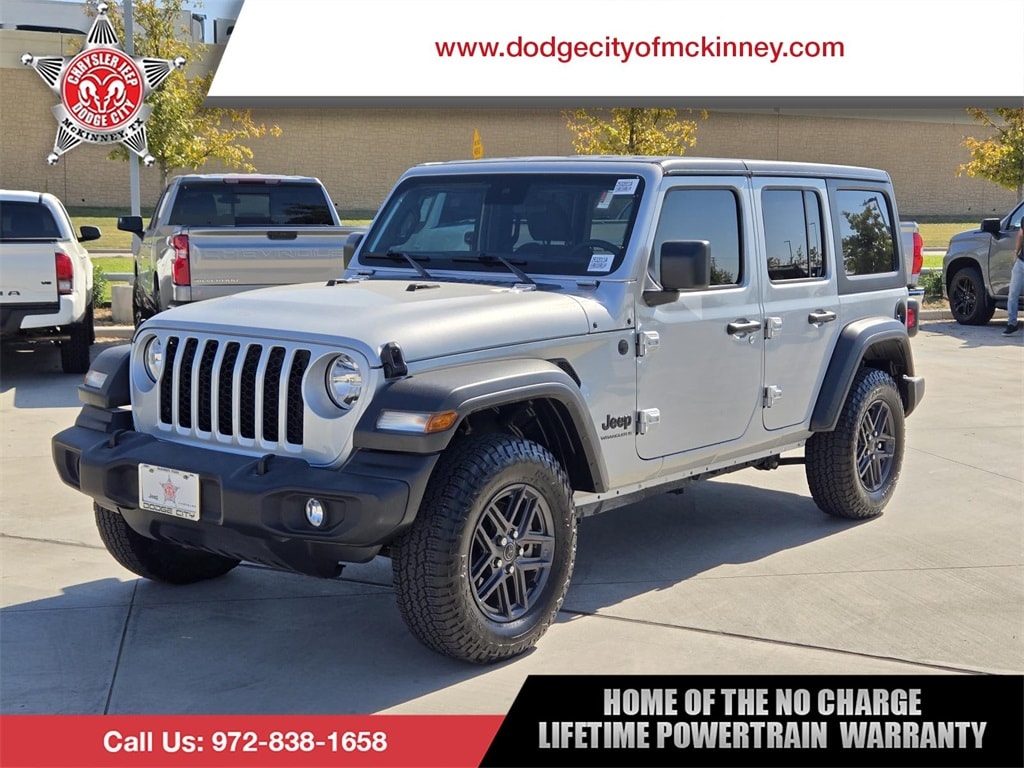 2024 Jeep Wrangler Sport S Silver Zynith Clearcoat 4WD 8-Speed Automatic 2.0L I4 DOHC 2-Door Passive Entry, Front Door Locks, Advanced Brake Assist, Air Conditioning w/Auto Temperature Control, Air Filtering, Automatic Headlamps, Cluster 7.0" TFT Color Display, Convenience Group, Corning Gorilla Glass, Deep Tint Sunscreen Windows, Emergency/Assistance Call, Enhanced Adaptive Cruise Control, Front 1-Touch Down Power Windows, Full Speed Forward Collision Warning Plus, Heated Front Seats, Heated Steering Wheel, Power Heated Mirrors, Premium Wrapped Steering Wheel, Quick Order Package 22S Sport S, Remote Keyless Entry, Remote Start System, Security Alarm, Speed Sensitive Power Locks, Sport S, Sun Visors w/Illuminated Vanity Mirrors, Universal Garage Door Opener, Wheels: 17" x 7.5" Gray.
