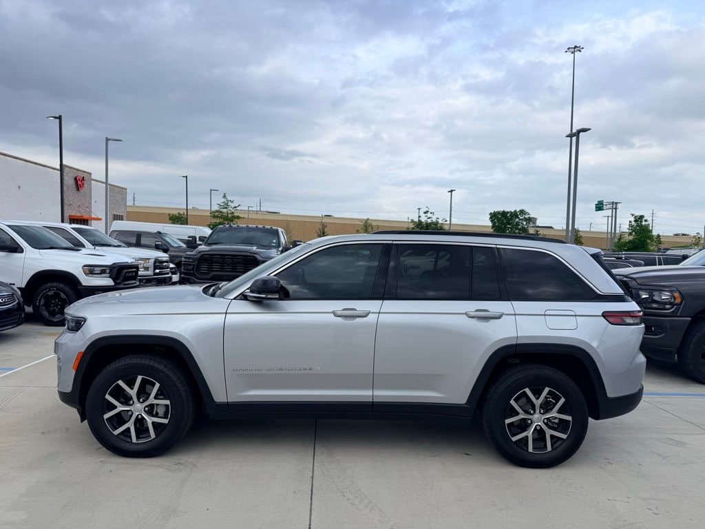 2025 Jeep Grand Cherokee Limited Silver Zynith RWD 8-Speed Automatic 3.6L V6 24V VVT Retired Service Loaner, 2nd-Row Manual Window Shades, Auto-Dimming Exterior Driver Mirror, Capri Leatherette with Axis II Seats, Dual-Pane Panoramic Sunroof, Front/Rear Doors and Liftgate with Passive Entry, Integrated Off-Road Camera, Intersection Collision Assist System, Luxury Tech Group II, Memory Steering Column, Navigation System, ParkSense Front/Rear Park Assist with Stop, Power Tilt/Telescope Steering Column, Quick Order Package 22E, Radio: Uconnect 5 Nav with 10.1" Display, Rain Sensitive Windshield Wipers, Rear Back-Up Camera Washer, Rearview Autodim Digital Display Mirror, Surround View Camera System, Ventilated Front Seats, Wireless Charging Pad.