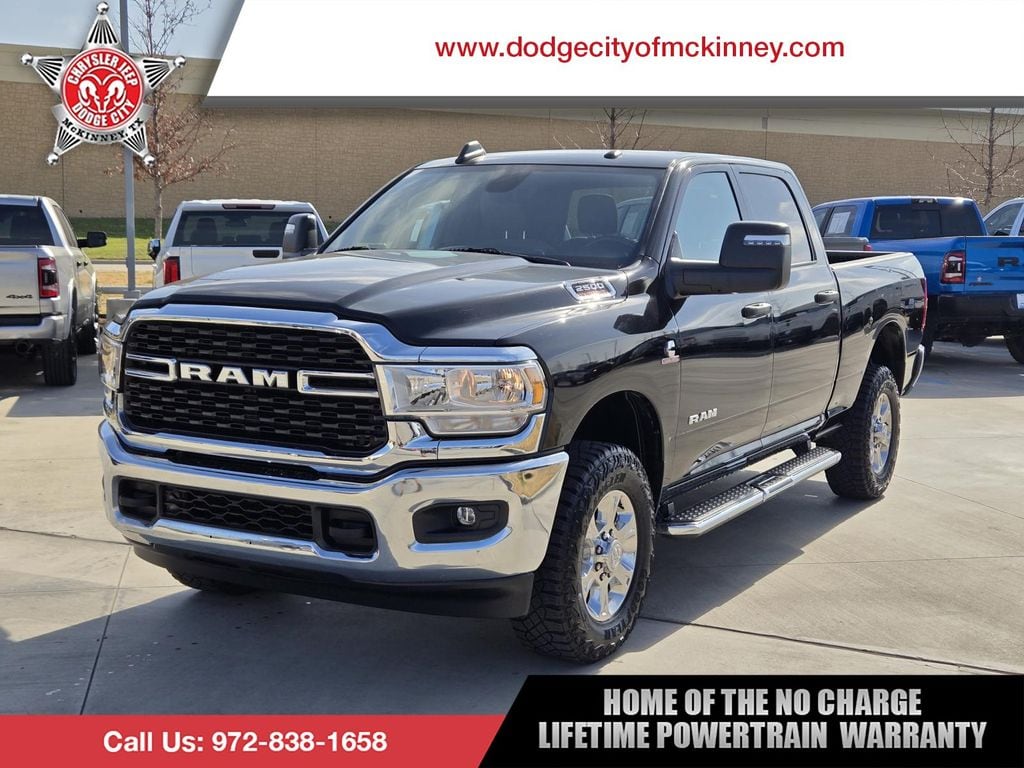 2024 Ram 2500 Big Horn Diamond Black Crystal Pearlcoat 4WD 6-Speed Automatic Cummins 6.7L I6 Turbodiesel 2 Way Rear Headrest Seat, 2nd Row In Floor Storage Bins, 4 Way Front Headrests, 40/20/40 Split Bench Seat, 4G LTE Wi-Fi Hot Spot, 8.4" Touchscreen Display, Apple CarPlay, Auto Power-Folding Mirrors, Big Horn IP Badge, Black Exterior Mirrors, Bluetooth Handsfree Phone & Audio, Center Hub, Connectivity - US/Canada, Dual Glove Boxes, Exterior Mirrors Courtesy Lamps, Exterior Mirrors w/Heating Element, Exterior Mirrors w/Supplemental Signals, Foam Bottle Insert (Door Trim Panel), Footwell Courtesy Lamp, For Details, Visit DriveUconnect.com, For More Info, Call 800-643-2112, Forward & Reverse Utility Lights, Front Armrest w/Cupholders, Front Center Seat Cushion Storage, Front Fog Lamps, Front Seat Back Map Pockets, Global Telematics Box Module (TBM), Glove Box Lamp, Google Android Auto, GPS Antenna Input, Integrated Center Stack Radio, Integrated Voice Command w/Bluetooth, Leather Wrapped Steering Wheel, Level 1 Equipment Group, Locking Lower Glove Box, Manual Adjust 4-Way Front Passenger Seat, Mirror Running Lights, Power 2-Way Driver Lumbar Adjust, Power Adjust 8-Way Driver Seat, Power Adjust Mirrors, Power Adjustable Convex Aux Mirrors, Power Heated Fold Telescope Mirrors, Power Telescoping Mirrors, Premium Cloth 40/20/40 Bench Seat, Quick Order Package 2HZ Big Horn, Radio: Uconnect 5 W w/8.4" Display, Radio: Uconnect 5 W w/8.4" Display (A62), Rear 60/40 Folding Seat, Rear Dome w/On/Off Switch Lamp, Remote USB Port - Charge Only, Selectable Tire Fill Alert, SiriusXM Radio Service, SiriusXM Satellite Radio, Steering Wheel Mounted Audio Controls, Storage Tray.