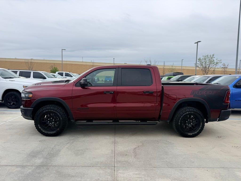 2025 Ram 1500 Rebel Delmonico Red Pearlcoat 4WD 8-Speed Automatic 3.0L I6 4G LTE Wi-Fi Hot Spot, Apple CarPlay/Android Auto, Black Premium Power Mirrors, Convex Wide-Angle Exterior Mirror Insert, Navigation System, Power Adjustable Pedals, Quick Order Package 21W Rebel, Radio: Uconnect 5 Nav w/12.0" Display, Rear Window Defroster, Rebel Level 1 Equipment Group, Remote Tailgate Release, Wireless Charging Pad.
