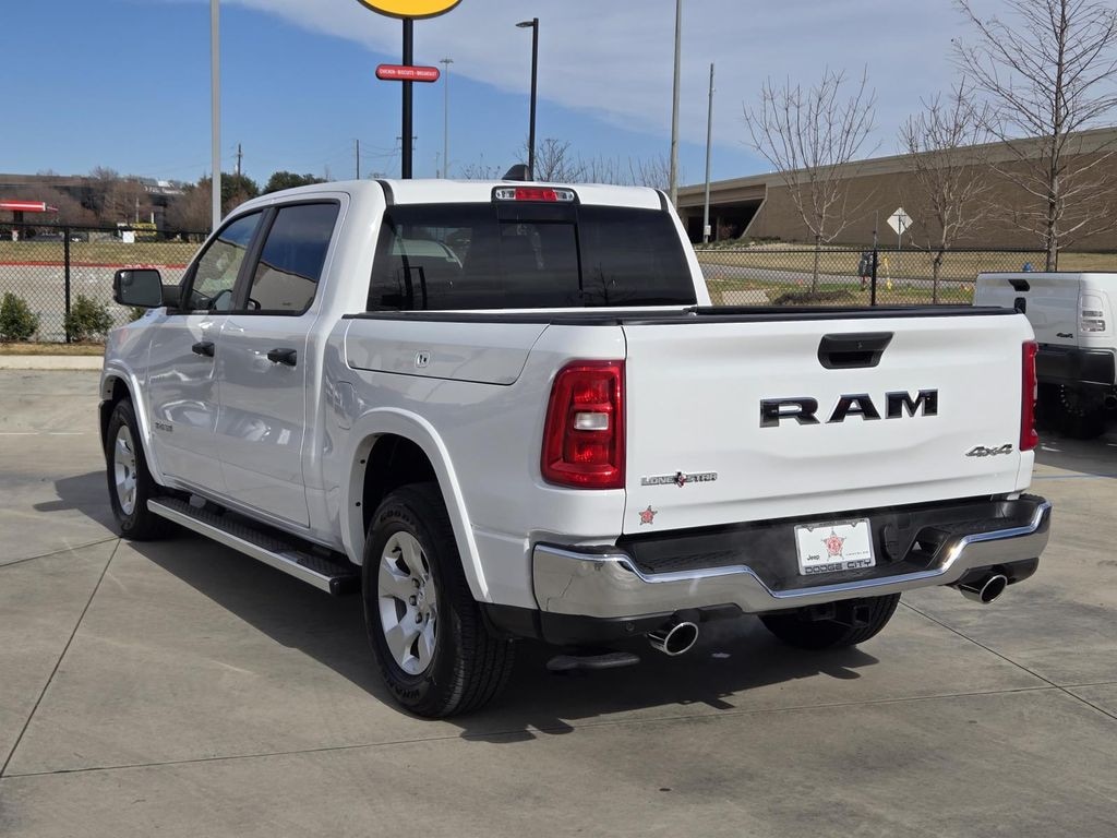 2025 Ram 1500 Big Horn/Lone Star Bright White Clearcoat 4WD 8-Speed Automatic 3.0L I6 115V Auxiliary Power Outlet, 2nd Row In Floor Storage Bins, 400W Inverter, Auto Power-Folding Mirrors, Auto-Dimming Exterior Driver Mirror, Auto-Dimming Rear-View Mirror, Bed Utility Group, Big Horn Level 1 Equipment Group, Black Exterior Mirrors, Black Premium Power Mirrors, Convex Wide-Angle Exterior Mirror Insert, Exterior 115V AC Outlet, Exterior Mirrors Courtesy Lamps, Exterior Mirrors w/Heating Element, Exterior Mirrors w/Supplemental Signals, Glove Box Lamp, Heated Front Seats, Heated Steering Wheel, Leather Wrapped Steering Wheel, Lone Star Badge, MOPAR 4 Adjustable Cargo Tie-Down Hooks, MOPAR Spray In Bedliner, Pick-Up Box Lighting, Power 2-Way Driver Lumbar Adjust, Power Adjust 8-Way Driver Seat, Power Adjustable Pedals, Protection Group, Quick Order Package 21R Lone Star (Regional), Radio: Uconnect 5 W w/8.4" Display, Rear Power Sliding Window, Rear Window Defroster, Steering Wheel Mounted Audio Controls, Sun Visors w/Illuminated Vanity Mirrors, Tow Hooks, Universal Garage Door Opener.