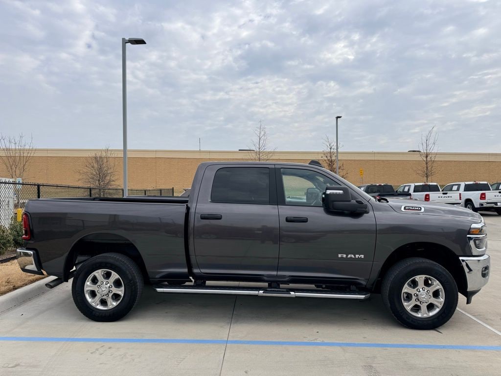 2025 Ram 2500 Big Horn Granite Crystal Metallic Clearcoat 4WD 8-Speed Automatic 6.4L V8 12" Touchscreen Display, 2 Way Rear Headrest Seat, 2nd Row In Floor Storage Bins, 4 Way Front Headrests, 40/20/40 Split Bench Seat, 4G LTE Wi-Fi Hot Spot, 9 Alpine Speakers w/Subwoofer, Air Conditioning ATC w/Dual Zone Control, Alexa Built-In, Anti-Spin Differential Rear Axle, Apple CarPlay, Apple CarPlay/Android Auto, Auto Power-Folding Mirrors, Auto-Dimming Rear-View Mirror, Big Horn Level 1 Plus Equipment Group, Black Exterior Mirrors, Connected Travel & Traffic Services, Connectivity - US/Canada, Dual Glove Boxes, Emergency Vehicle Alert System (EVAS), Exterior Mirrors Courtesy Lamps, Exterior Mirrors w/Heating Element, Exterior Mirrors w/Supplemental Signals, Foam Bottle Insert (Door Trim Panel), Folding Flat Load Floor Storage, Footwell Courtesy Lamp, Forward & Reverse Utility Lights, Front Armrest w/Cupholders, Front Center Seat Cushion Storage, Front Seat Back Map Pockets, Global Telematics Box Module (TBM), Glove Box Lamp, Google Android Auto, GPS Antenna Input, GPS Navigation, HD Radio, Integrated Voice Command w/Bluetooth, LED Bed Lighting, Locking Lower Glove Box, Luxury Steering Wheel, Manual Adjust 4-Way Front Passenger Seat, Mirror Running Lights, MOPAR Deployable Bed Step, MOPAR Spray In Bedliner, Off-Road Info Pages, Power 2-Way Driver Lumbar Adjust, Power Adjust 8-Way Driver Seat, Power Adjust Mirrors, Power Adjustable Convex Aux Mirrors, Power Heated Folding Telescopic Mirrors, Power Telescoping Mirrors, Premium Cloth 40/20/40 Bench Seat, Quick Order Package 2UZ Big Horn, Radio: Uconnect 5 Nav w/12.0" Display, Rear 60/40 Folding Seat, Rear Dome w/On/Off Switch Lamp, Remote Start System, Remote USB Port - Charge Only, Selectable Tire Fill Alert, SiriusXM Radio Service, SiriusXM w/360L, Steering Wheel Mounted Audio Controls, Storage Tray, Trailer Tow Pages.