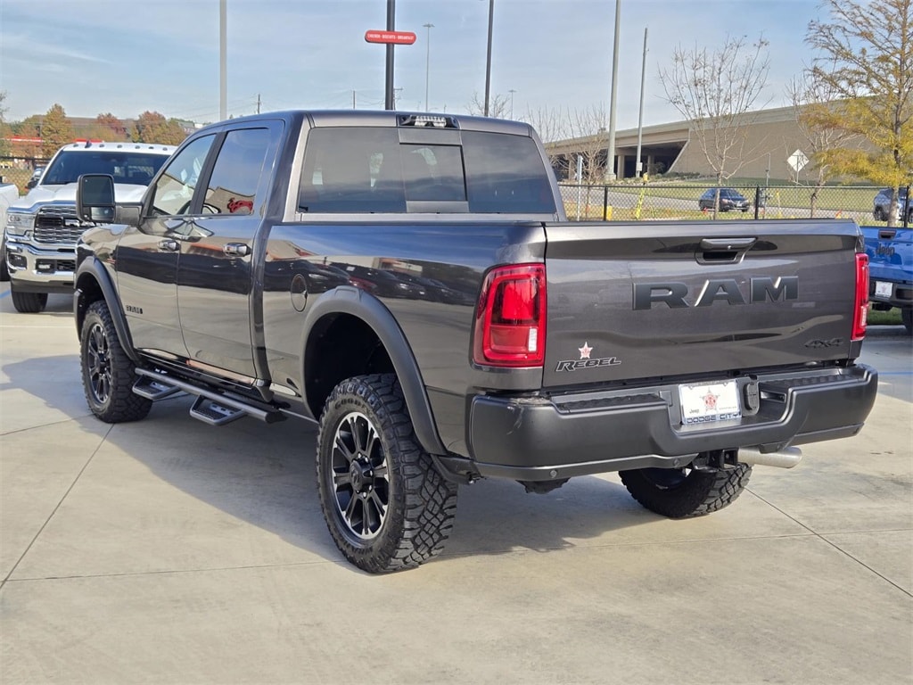 2025 Ram 2500 Rebel Granite Crystal Metallic Clearcoat 4WD 8-Speed Automatic 6.7L I6 115V Auxiliary Rear Power Outlet, 2 Way Rear Headrest Seat, 4 Way Front Headrests, 5th Wheel/Gooseneck Towing Prep Group, 9 Alpine Speakers w/Subwoofer, Apple CarPlay/Android Auto, Auto Adjust In Reverse Exterior Mirrors, Auto Dim Exterior Mirror, Auto High Beam Headlamp Control, Auto Power-Folding Mirrors, Auto-Dimming Exterior Passenger Mirror, Black Exterior Mirrors, Body Color Door Handles, Bucket Seats, Dual Wireless Charging Pad, Exterior Mirrors Courtesy Lamps, Exterior Mirrors w/Heating Element, Exterior Mirrors w/Memory, Exterior Mirrors w/Supplemental Signals, Folding Flat Load Floor Storage, Forward & Reverse Utility Lights, Front Door Locks 2-Door Passive Entry, Front Seat Back Map Pockets, Full Length Upgraded Floor Console, Heated Front Seats, Heated Second Row Seats, Heated Steering Wheel, High Back Seats, Leather Trimmed Bucket Seats (PL), LED Dome Lamp w/On/Off Switch, LED Interior Lighting, Media Hub w/2 Charge Only USBs, Mirror Running Lights, MOPAR Front & Rear Rubber Floor Mats, Overhead LED Lamps, Power 2-Way Driver Lumbar Adjust, Power 2-Way Passenger Lumbar Adjust, Power Adjust 8-Way Driver Seat, Power Adjust 8-Way Front Passenger Seat, Power Adjust Mirrors, Power Adjustable Convex Aux Mirrors, Power Adjustable Pedals w/Memory, Power Heated Fold Telescopic Mirrors w/Memory, Power Telescoping Mirrors, Premium Overhead Console, Quick Order Package 24R Rebel, Radio: Uconnect 5 Nav w/12.0" Display, Radio/Driver Seat/Mirrors/Pedals Memory, Rain Sensitive Windshield Wipers, Rear 60/40 Folding Seat, Rebel Level 1 Equipment Group, Sport Performance Hood, Sun Visors w/Illuminated Vanity Mirrors, Universal Garage Door Opener, Ventilated Front Seats, Wheels: 20" x 8.0" Black Diamond Cut Aluminum.